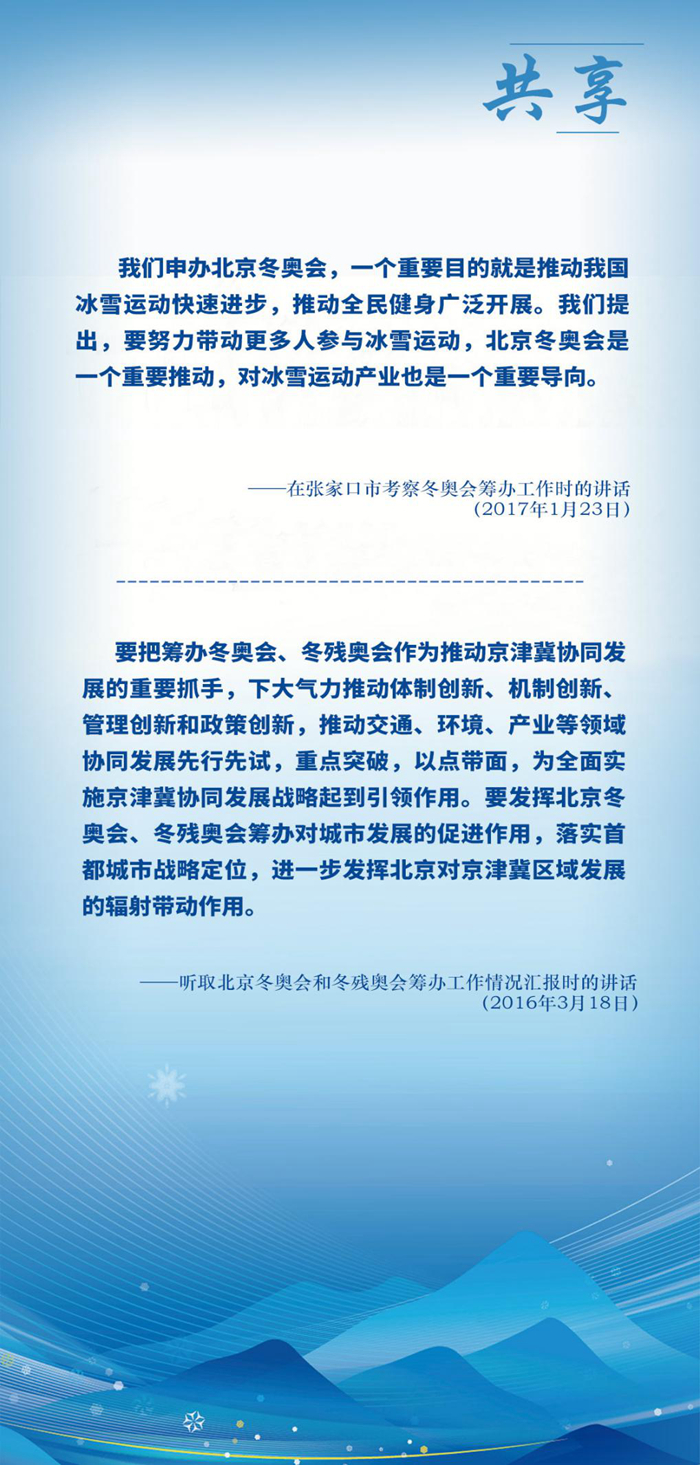 “办好北京冬奥会、冬残奥会是党和国家的一件大事,是我们对国际社会的庄严承诺”。对冬奥会的筹办工作,习近平总书记一直高度重视、强力部署。中国日报网为您梳理总书记关于冬奥会的论述,一同领悟其中理念。