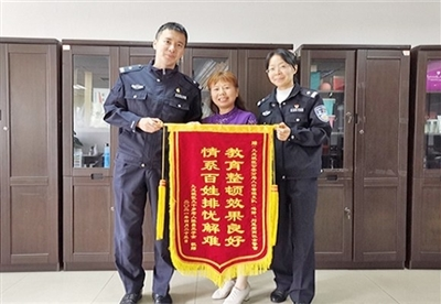 家住九龙坡区火炬大道的陈婆婆和家人,就对民警解决他们一家燃眉之急一事感怀感激,专程将一面写有“教育整顿效果良好 情系百姓排忧解难”的锦旗送到九龙坡区公安分局人口管理支队。