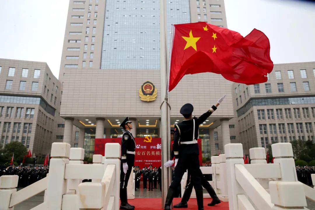 1月10日上午,为热烈庆祝2022年“中国人民警察节”,激励广大民警、辅警以更加强烈的政治担当、忠实履行新时代使命任务,自治区公安厅机关举行“公安心向党 护航新征程”主题升旗仪式,自治区副主席、公安厅党委书记、厅长周成方出席仪式并致辞。