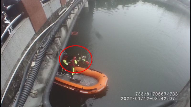 该女子此时已漂浮到了仙人桥的下方水面,渐渐没有了意识。救援人员分兵两路,由特巡警队员在桥面滑降救援,消防队员则从岸边利用救生艇靠近轻生人员。