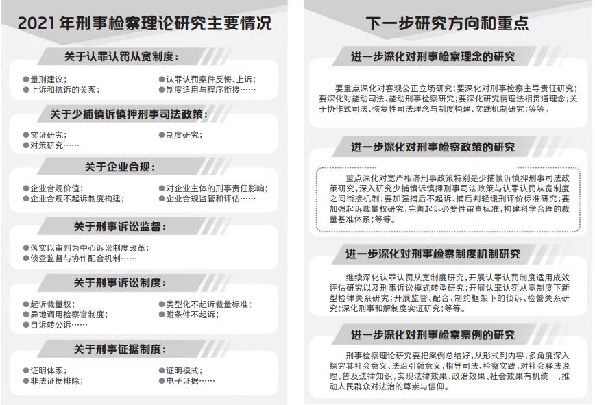 2021年,刑事检察理论研究紧盯事关刑事检察事业长远发展的主要矛盾和突出问题,研究广度、深度不断拓展——