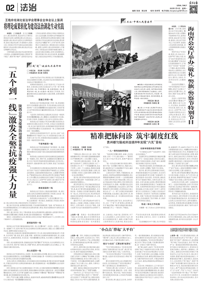 1月10日,《法治日报》法治版刊发了《精准把脉问诊筑牢制度红线 贵州都匀强戒所连续20年实现“六无”目标》的文章。