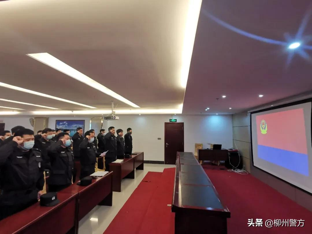 在第二个中国人民警察节到来之际,亮剑•靖边”打击偷越国(边)境犯罪专项行动援边工作队(靖西)民辅警整齐着装,精神抖擞,意气风发,向中国人民警察警旗宣誓,伴随着嘹亮的歌曲高唱中国人民警察警歌。