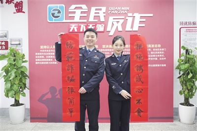 活动中,民警不仅和群众面对面交流反诈防骗注意事项,还向居民派发“反诈红包”,用写春联的形式向辖区居民送上节日祝福和反诈提醒。