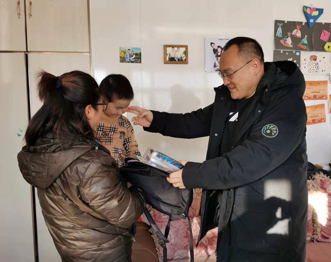 赵云走访对口帮扶村,并给孩子送去学习用品。