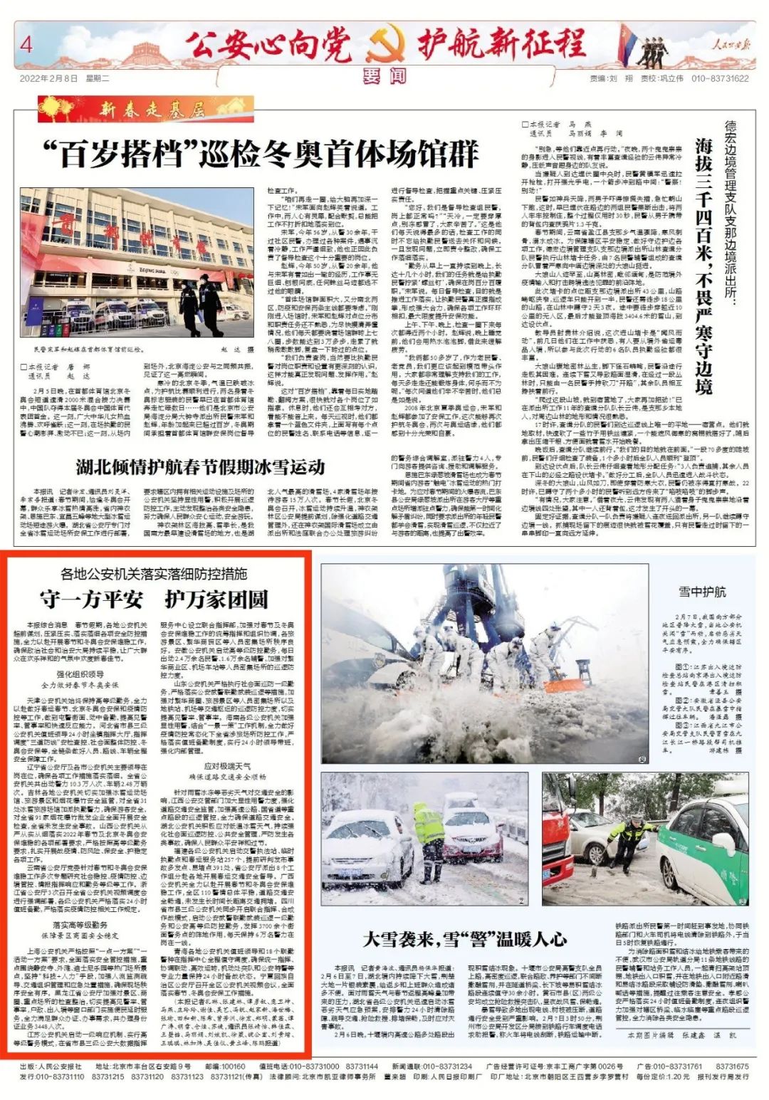 春节假期,各地公安机关超前谋划,压紧压实、落实落细各项安全防控措施,全力以赴开展春节和冬奥会安保维稳工作,确保政治社会和治安大局持续平稳,让广大群众在欢乐祥和的气氛中欢度新春佳节。