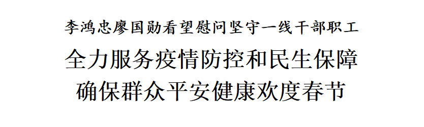 1月30日腊月二十八上午,市委书记李鸿忠,市委副书记、市长廖国勋先后来到定点医院、基层派出所、食品仓储物流库、燃气管线所,检查疫情防控、城市管理、民生保障等工作,亲切看望慰问基层一线工作者,向大家表达诚挚的新春问候。