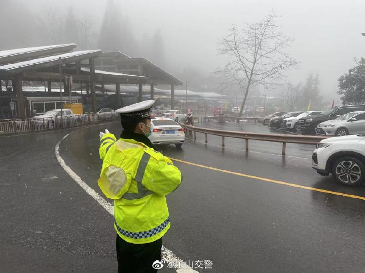 三、峨眉山景区:零公里目前下雪。黄湾已开始交通管制。