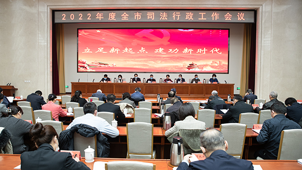 市司法局党委委员、副局长徐明江、郭卫、魏力、张国强、马燕分别就2022年重大活动服务保障、统筹依法治市和依法行政与律师行业建设、普法与依法治理、行政复议应诉、现代公共法律服务体系建设工作进行了部署。