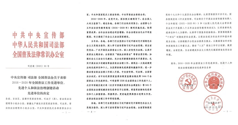 贵州省获评2016—2020年全国普法工作先进单位、先进个人和依法治理创建活动先进单位名单