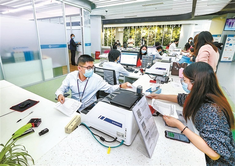 春节后上班第一天,福建省晋江市行政服务中心办事大厅工作人员全员到岗,为群众办理业务。 董严军 摄