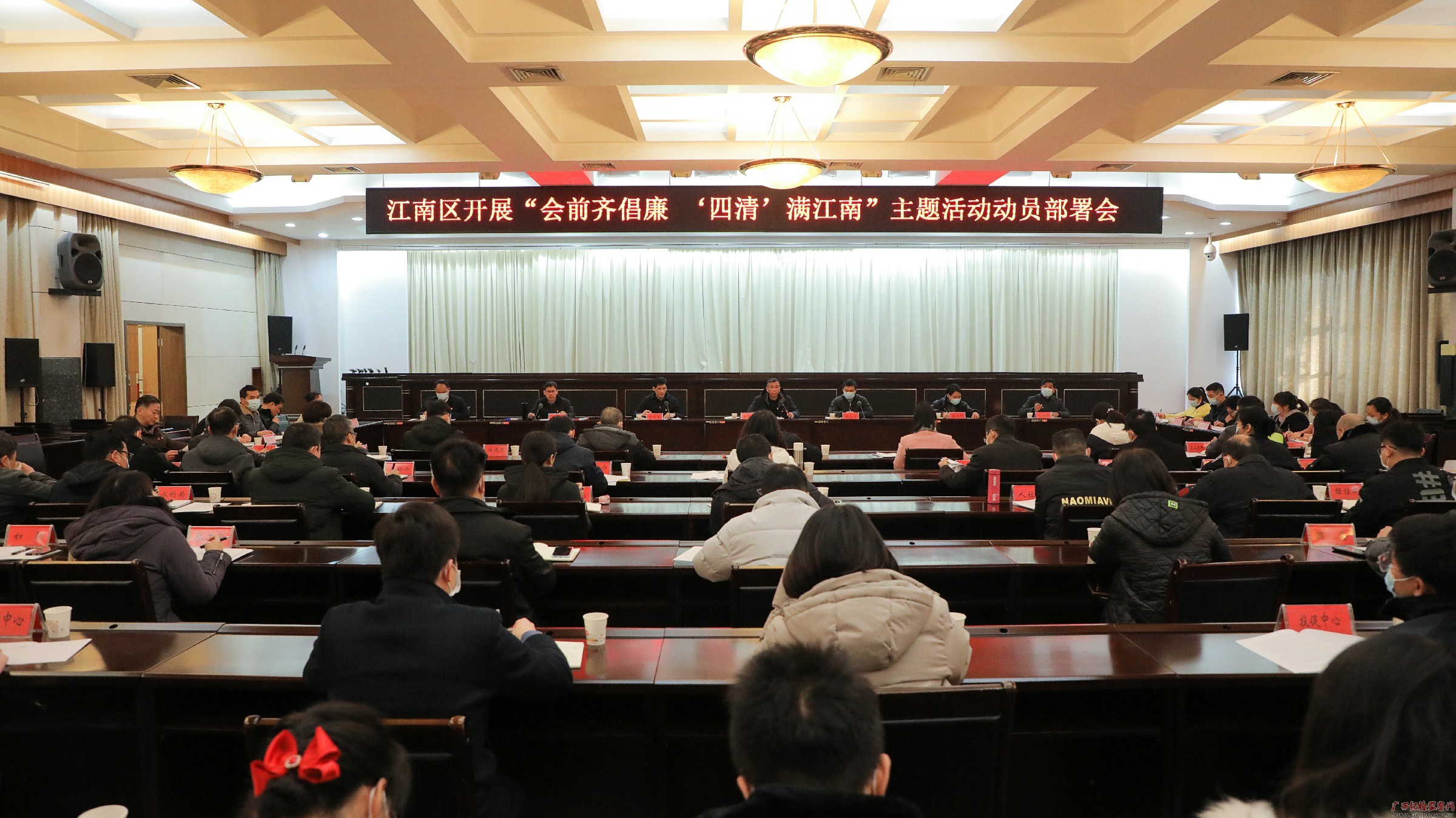 江南区会前齐倡廉‘四清’满江南”主题活动部署会现场。
