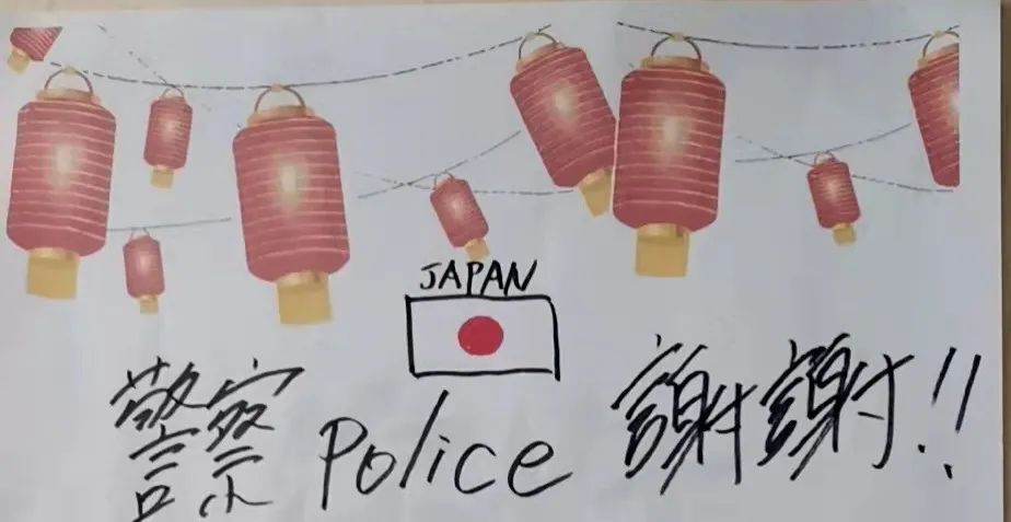 译文:特别感动(挪威语),多谢你们,中国警察。