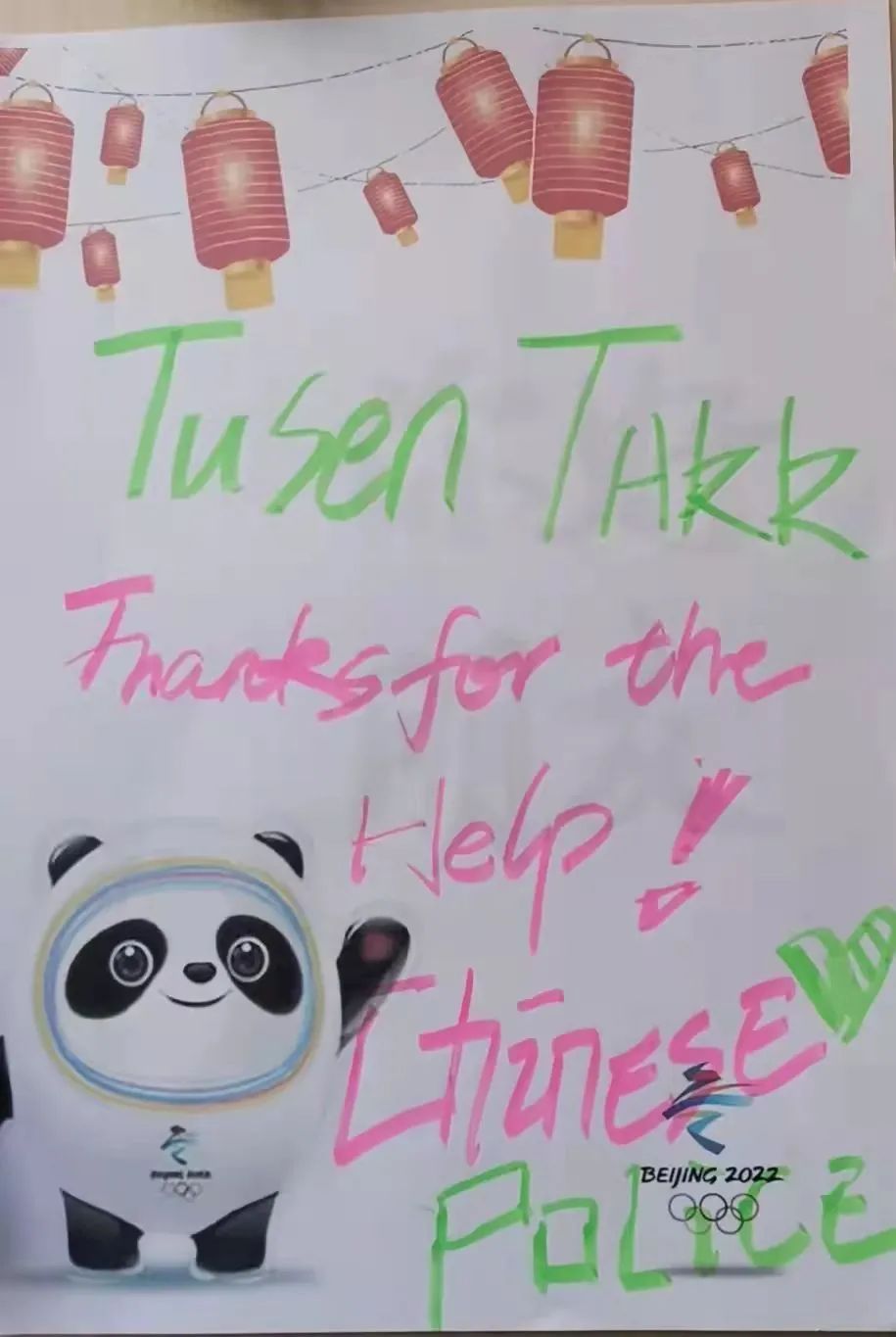 冬奥执勤民警薛峰说:“收到外国友人的手绘感谢信,我也感到很意外!觉得只不过是做了一个服务冬奥的工作者应该做的事,却收获了这份意外的感动。这封感谢信不仅是对我们服务的肯定,更是对我们今后提升服务质量的一种鞭策。我和我的团队会在严格遵守疫情防控管理规定的前提下,继续做好服务工作,并以更加认真的态度,更加饱满的热情,投入冬残奥会服务工作中,展现作为河北公安最好的服务质量和精神风貌。”