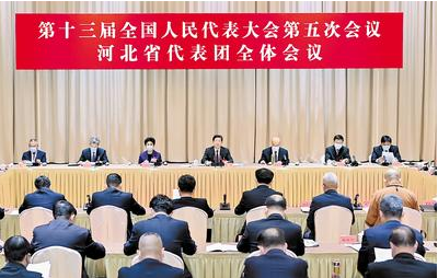 3月3日下午,在京出席十三届全国人大五次会议的河北省代表团召开全体会议。全国人大代表、省委书记、省人大常委会主任王东峰主持会议。