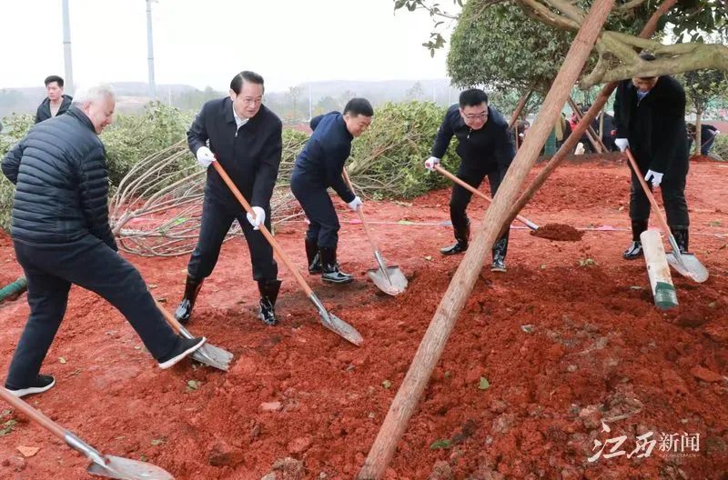 ▲2022年2月16日,省委书记易炼红参加义务植树活动时指出,绿色生态是江西最大财富、最大优势、最大品牌,要提升江西绿色的成色,擦亮江西绿色的底板,以更高标准打造美丽中国“江西样板”。