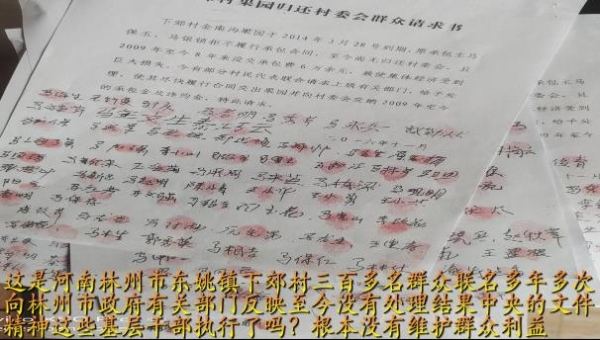 以上证据是河南林州市东姚镇村三百多名群众提供,盼望河南安阳林州市纪委陈亮书记为切实维护下郊村三百多名群众利益彻查腐败、将犯罪绳之以法,彻查保护伞。同时,此案也要引起河南省政府省纪委的高度重视、由于地方政府保护主义思想严重,多年来群众的诉求一直没有得到解决…