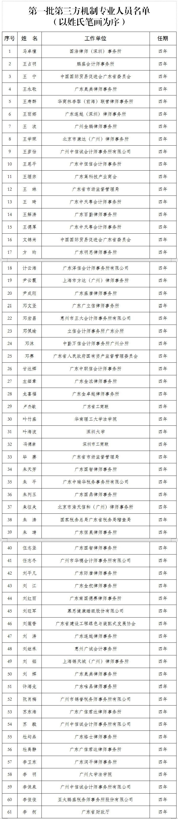 根据《广东省涉案企业合规第三方监督评估机制实施办法(试行)》《广东省涉案企业合规第三方监督评估机制专业人员选任管理办法(试行)》等文件规定,经前期公示和省涉案企业合规第三方监督评估机制管理委员会联席会议讨论通过,省涉案企业合规第三方监督评估机制管理委员会决定聘请马卓檀等169名同志为第一批第三方机制专业人员,聘期至2026年3月。