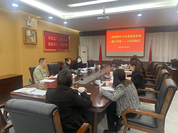 为推进《贵州省中小企业促进条例(修订草案)》(以下简称《办法(草案)》)立法进程,高质量完成立法任务,3月23日,省司法厅召开内部研稿会,对《办法(草案)》进行逐条细审。会议由副厅长胡勇主持,立法二处处长宁茵,立法一处、立法二处在岗同志全部参加会议。