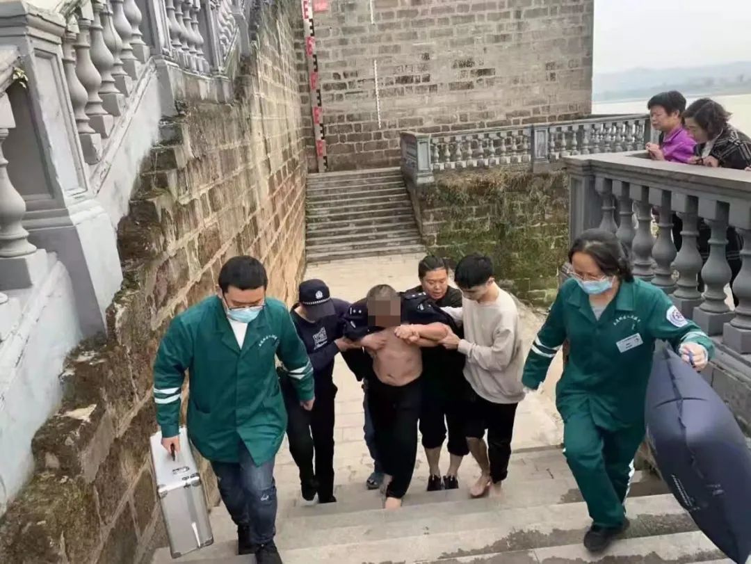 迅速跳入江中赶到身旁并稳住老人
