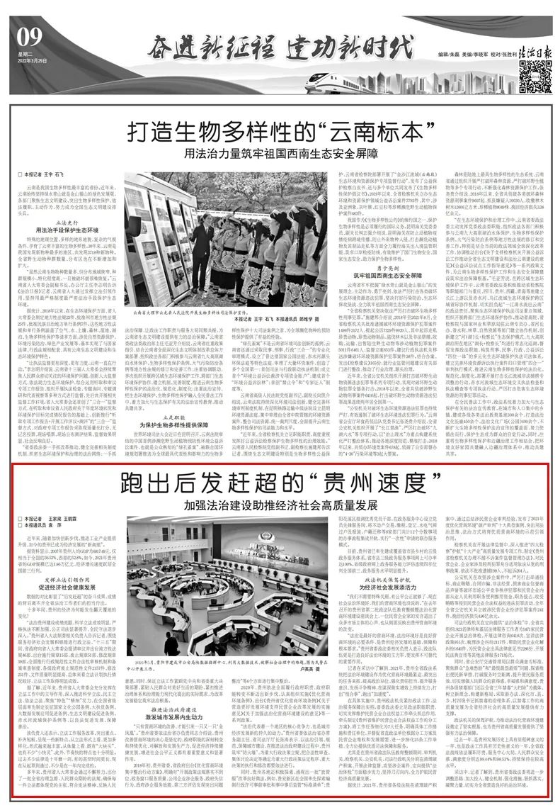 3月29日,《法治日报》专版刊发了《跑出后发赶超的“贵州速度”加强法治建设助推经济社会高质量发展》的文章。