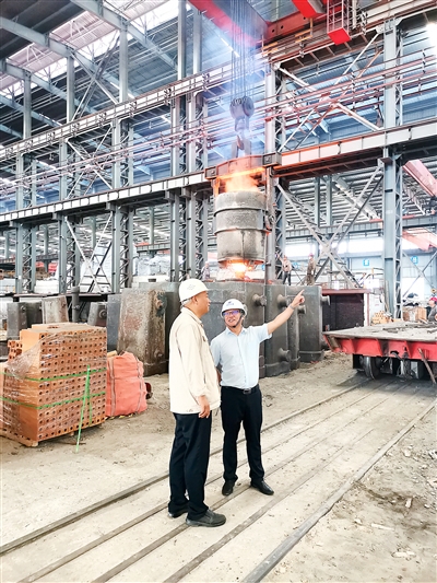 黄石工矿集团钢厂加强对外技术合作,与其他企业联合成立模具材料厂,盘活集团资产。图为近日,集团相关部门管理人员到该企业车间了解企业生产状况。 邱江宏 摄
