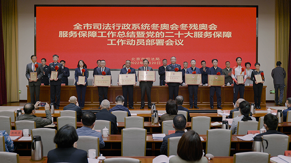 会议播放了北京市司法行政系统北京2022年冬奥会、冬残奥会服务保障工作总结专题片。