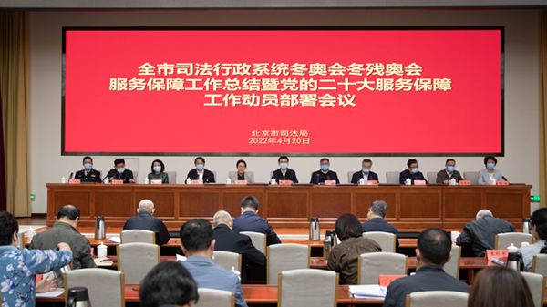4月20日,北京市司法局召开全市司法行政系统冬奥会冬残奥会服务保障工作总结暨党的二十大服务保障工作动员部署会,深入贯彻落实习近平总书记在北京冬奥会冬残奥会总结表彰大会上的重要讲话精神和蔡奇书记在我市总结表彰大会上的讲话要求,全面总结我市司法行政系统服务保障冬奥的成功经验,隆重表彰先进集体和先进个人,并对做好党的二十大服务保障工作进行动员部署。