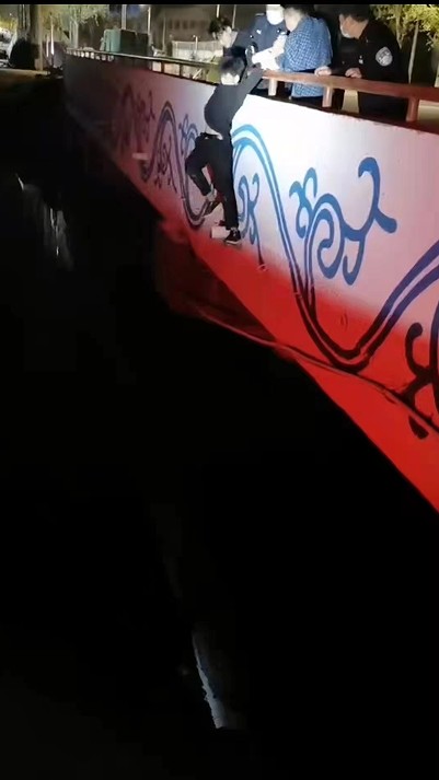 经了解,该男孩为展某,蠡县小陈乡人,因其父母离婚,心情烦闷,随与另外两名男孩相约吃饭,展某酒后乘坐电动车行至此处时,一时想不开,从电动后座突然跳下,直接翻下桥边护栏,同行的两名男孩随即拽住他,并报警求救。被救上岸的男孩在出警民警反复劝说安慰下,情绪渐渐稳定,在查询其母亲电话后,其母刘某到达现场,出警人员与其母进行了详细沟通,看到展某平安无事,刘某对公安民警深夜出警及时挽救孩子生命的行为表示了真诚感谢。