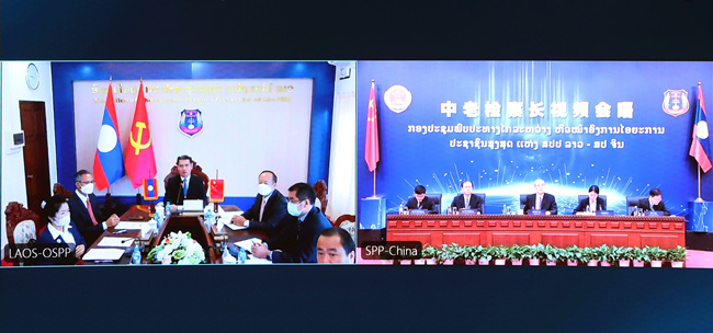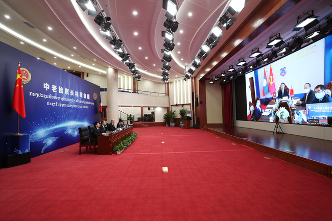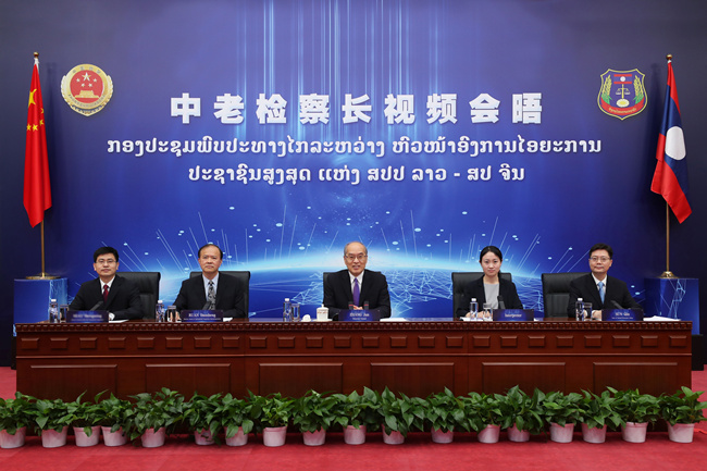 4月26日,最高人民检察院检察长张军在京与老挝最高人民检察院检察长赛萨纳·阔普同举行视频会晤。