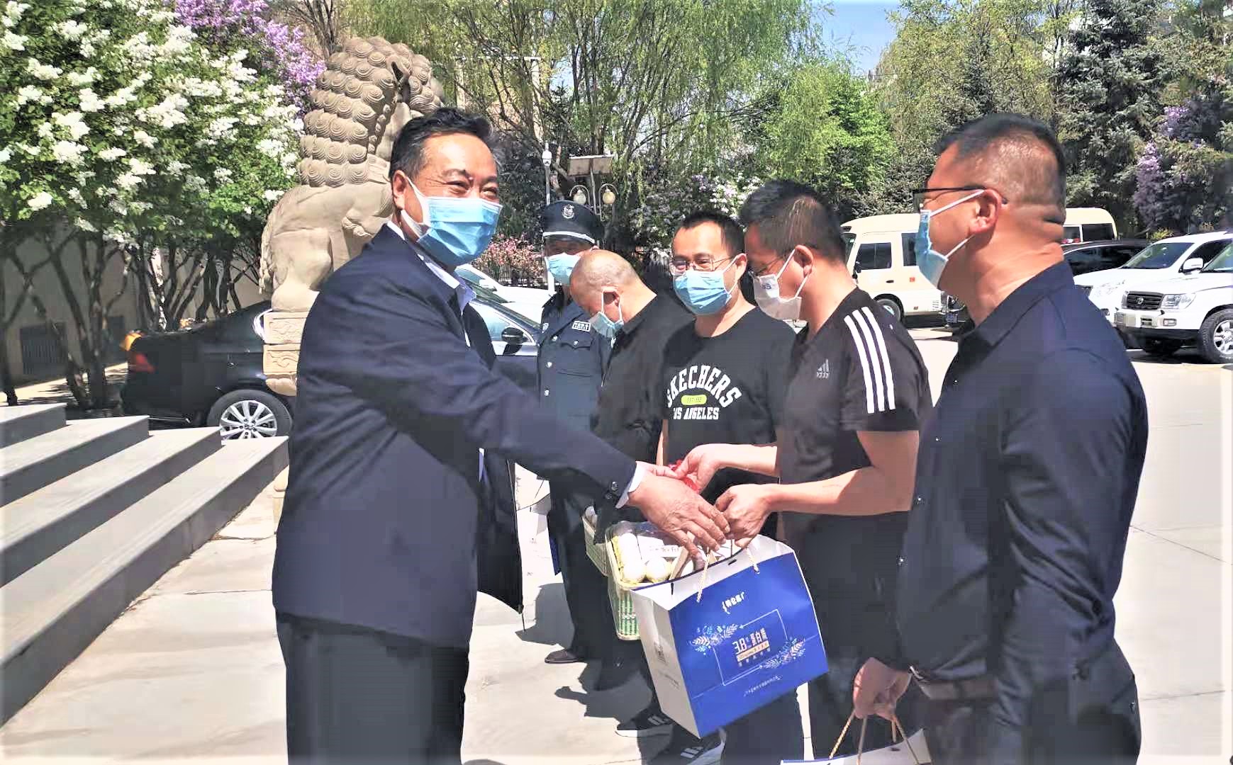 自4月14日西宁市实行静态管理以来,厅指挥中心、科信处、办公室等部门按照厅党组工作要求,安排专人认真落实疫情防控责任,长时间加班加点,保障了静态管理期间厅机关办公及生活场所的高效正常运转。近日,厅党组成员、政治部主任赵建同志带领厅机关相关处室负责人慰问了厅机关坚守一线干部职工;赵主任一行还到我厅所在社区--西宁市城中区南滩办事处建新社区进行了慰问,带去厅党组的问候和关怀。