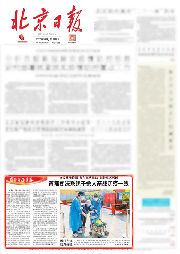 面对严峻的疫情防控形势,首都司法行政人员积极响应号召,投身疫情防控工作。他们有的下沉社区支援核酸检测工作,有的夜以继日追踪感染源头,有的在居住地被划为封控区后,就地转为志愿者服务社区居民。据北京市司法局统计,“五一”期间,市区两级司法行政机关及各所属行业协会共组织1312人下沉一线,支援社区,开展志愿服务共计3260人次。