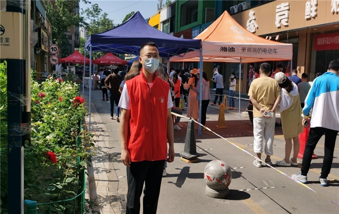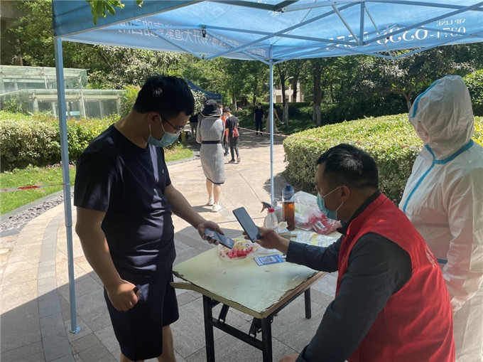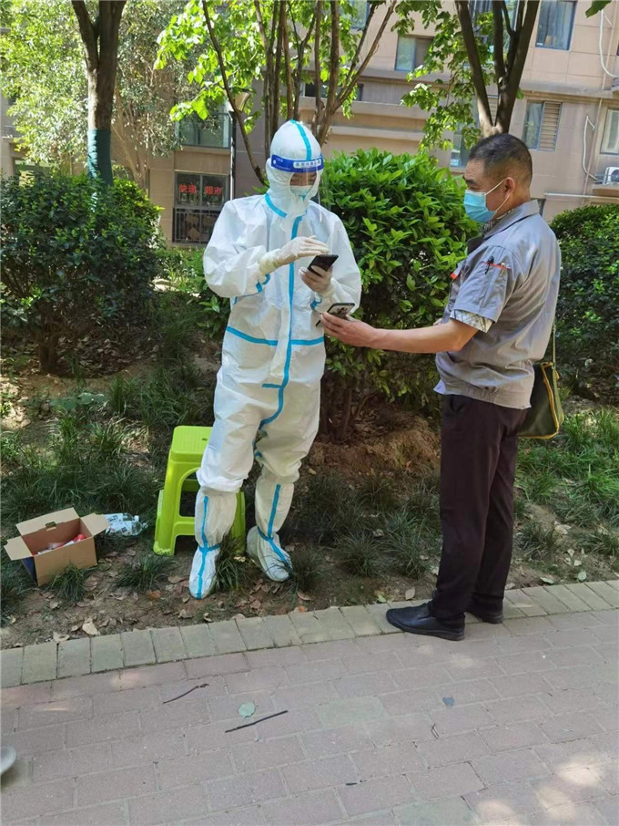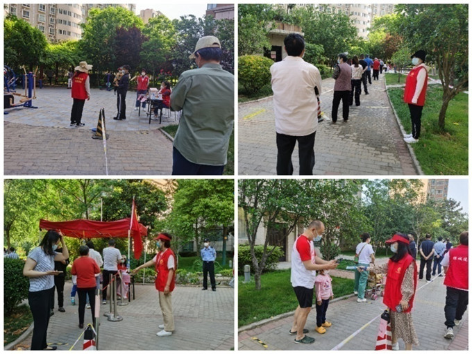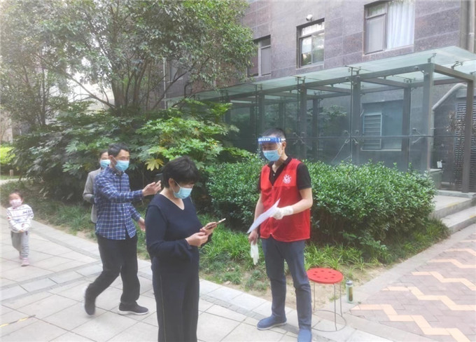 我在康宁社区,我在心怡路社区,我在恒通新城,我在上东城,我在六合苑……倡议发出一小时内,就有51名党员成功参与。同志们化整为零,他们身穿红马甲,配合社区进行核酸检测、卡点值守、文明引导、秩序维护等,是人群中靓丽的风景线;他们全副武装,化身“大白”,与病毒较量,同时间赛跑。在他们的影响下,部分家属也加入志愿者行列。