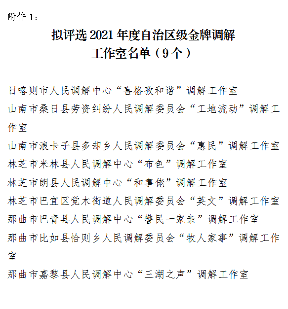 附件:1.拟评选2021年度自治区级金牌调解工作室名单