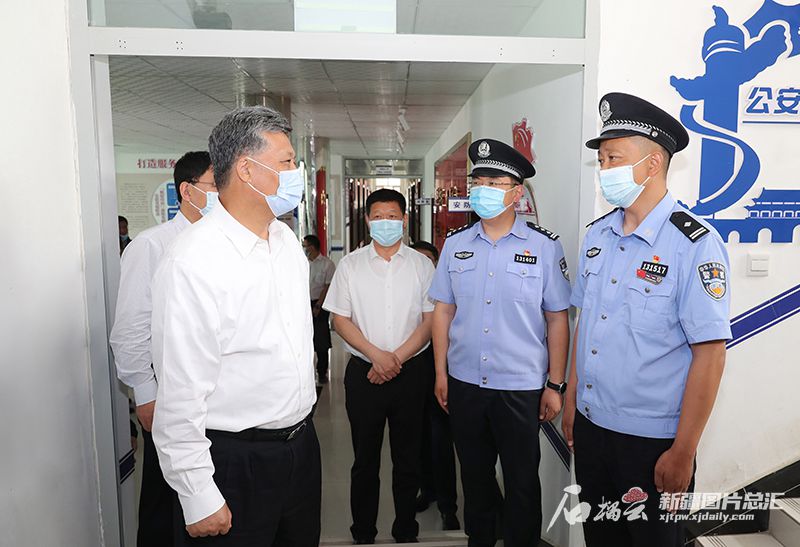 5月17日,自治区党委书记马兴瑞在和硕县特吾里克镇派出所听取维稳工作汇报。天山网-新疆日报记者崔志坚摄