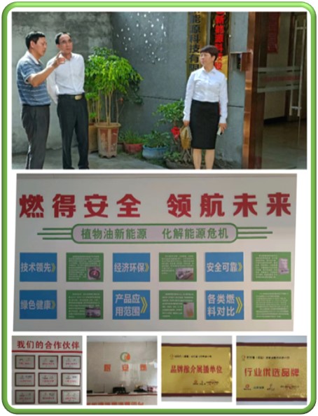 在考察调研过程中,福建沁铭新能源科技有限公司领导李和兴、杨华贵、赖强向郑长顺一行简要介绍了公司的组织架构、主营业务,以及公司植物燃油、植物燃料添加剂、植物燃油燃烧机、节能炉具等主要产品,同时围绕推动绿色低碳发展,深入开展绿色生活创建等方面工作进行深入交流。