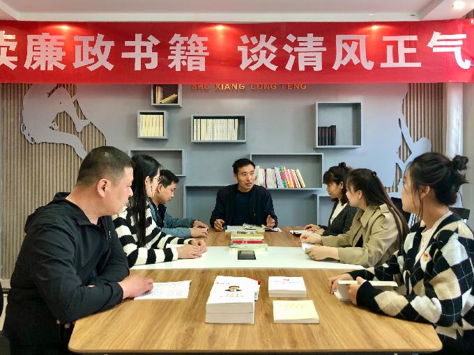 平顶山市湛河区纪委监委组织开展“读廉政书籍,谈清风正气”读书会活动,图为该区纪检监察干部在龙腾社区书屋分享读书感悟。(平顶山市湛河区纪委监委 陈卓 摄)