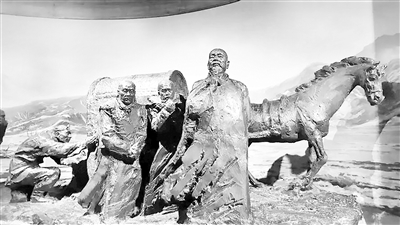 林则徐遣戍伊犁雕塑,林则徐在新疆仍通过家书关心儿子的学业,希望他们立志向学、戒懒戒骄。(资料图片)
