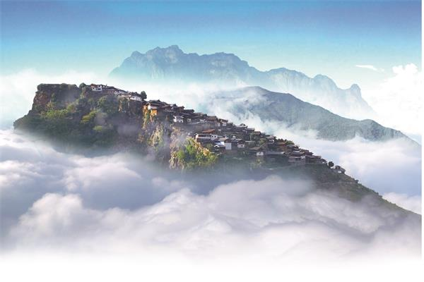 在丽江城北110多公里处,有一座被白云拥抱的村庄,叫宝山石头城,因百余户人家聚居在一座独立的蘑菇状巨石上而得名。石头城三面临崖,一面临江,是一座真正的天险之城。古城内瓦屋鳞鳞,巷道纵横,人们以石为屋,以石为器,令人感叹。大自然的鬼斧神工与纳西先民的智慧和改造自然的创造精神相结合,造就了石头城的奇观。
