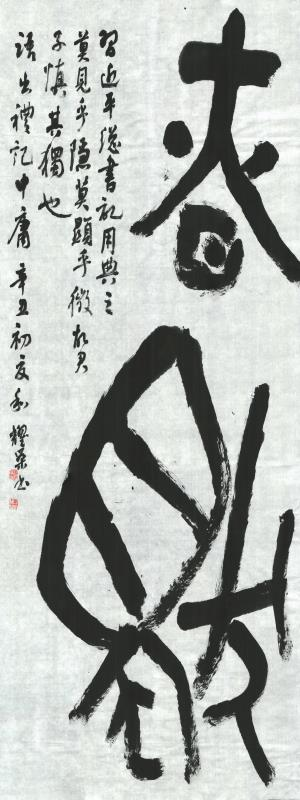 这幅字写的是大篆的“慎独”,是习近平总书记用典,出自《礼记·中庸》,“莫见乎隐,莫显乎微,故君子慎其独也”。打铁的人必先成为铁打的人,纪检监察干部要加强自身修养,做到慎独,在没有外界监督的时候,也要用最严的标准严格约束自己的行为。