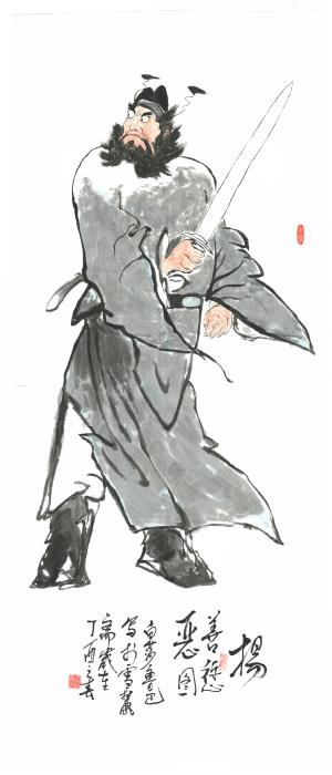 该绘画作品寓意纪检监察干部要学习钟馗刚正不阿的精神,确保党和人民赋予的权力不被滥用、惩恶扬善的利剑永不蒙尘。