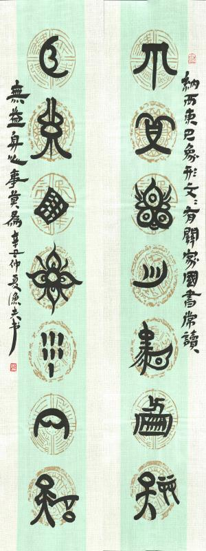 书法作品《东巴文楹联:有关家国书常读,无益身心事莫为》