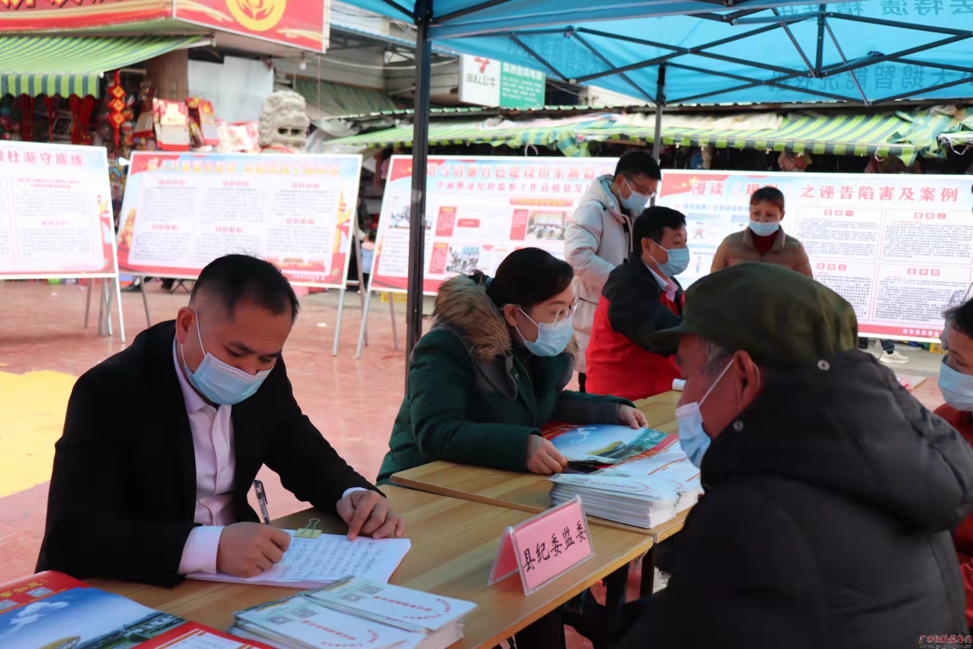 图为该县纪检监察干部在乡镇接访现场进行政策宣传、解答群众咨询。
