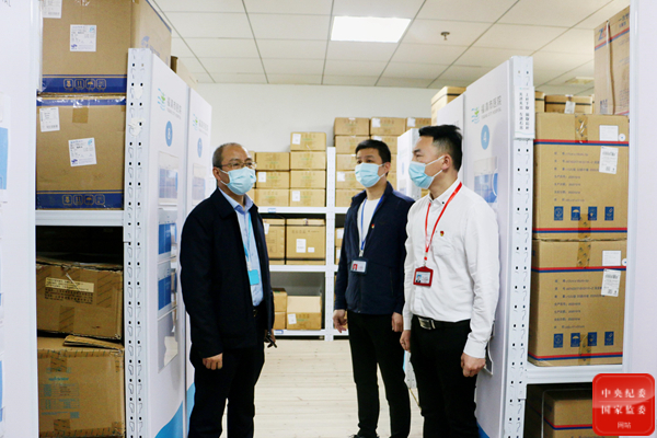 福建省福清市纪委监委立足职责定位,紧盯重点地区返乡人员摸排、核酸检测、医疗卫生机构院感防控、防控物资储备等疫情防控重点内容,采取“四不两直”方式,直奔一线,靠前监督、跟进监督、精准监督,推动各级各部门将疫情防控各项措施落实落细。图为该市纪检监察干部在疫情防控物资储备点开展督查。(福建省福清市纪委监委 高晶晶 摄)