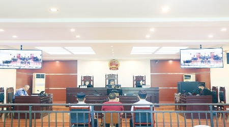 图为钟青勇贪污、受贿、滥用职权案庭审现场。(资阳市纪委监委供图)