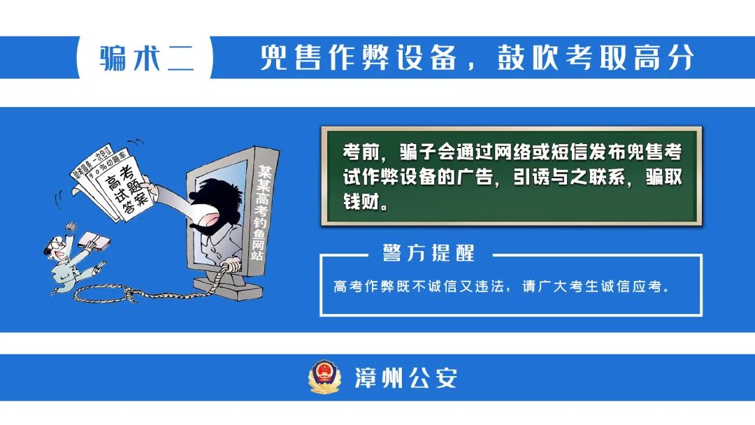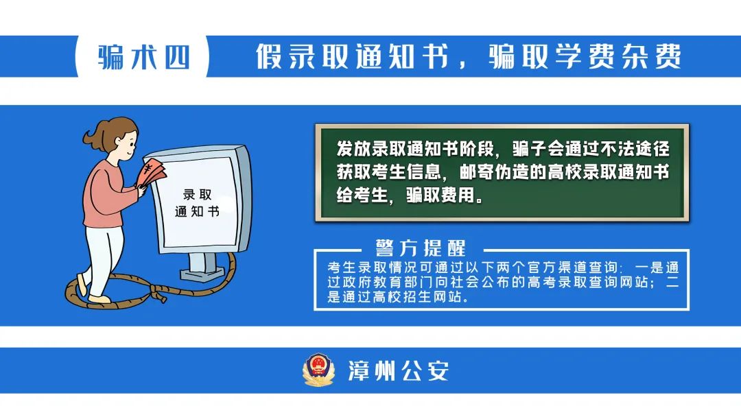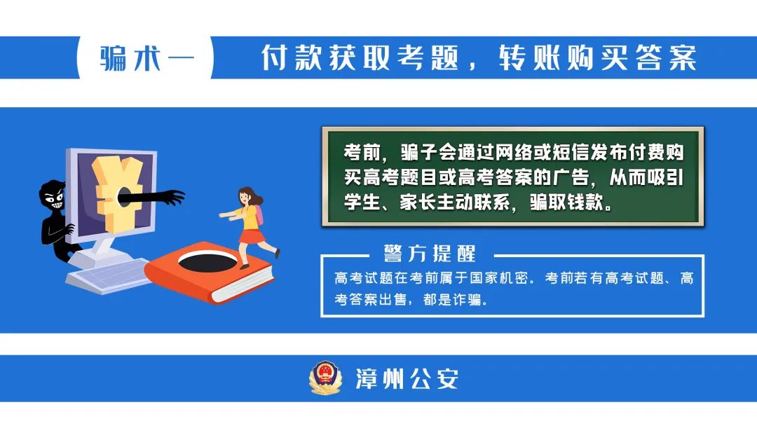 2022年高考在即,每年高考前后都是涉考诈骗案件的高发期。对此,漳州公安为广大学子和考生家长们准备了一份高考防骗指南,请仔细阅读,谨防诈骗!