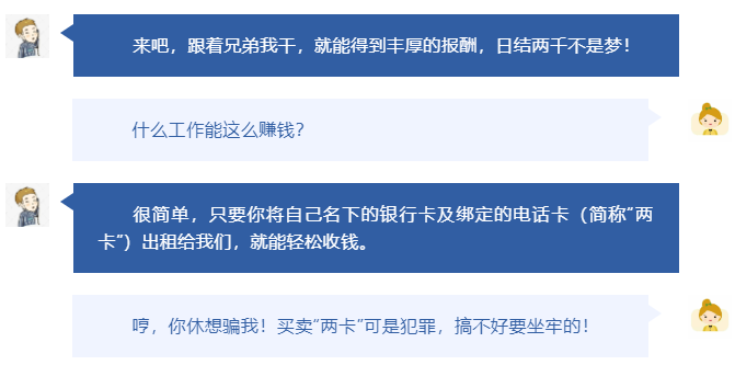 面对以上诱惑,我们是否能清醒的说“不”?近年来,信息网络诈骗犯罪屡禁不止,特别是不少在校学生被蛊惑利用向不法人员提供个人“两卡”,成为信息网络诈骗犯罪活动的“工具人”,造成难以弥补的恶劣后果。