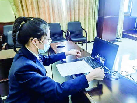 3月11日,红桥区检察院第一检察部检察官王晓蓓在检务保障部门的配合下,通过远程会议的方式对一名有早产可能的诈骗案件犯罪嫌疑人远程适用认罪认罚从宽制度,并在律师的见证下签署了认罪认罚具结书。