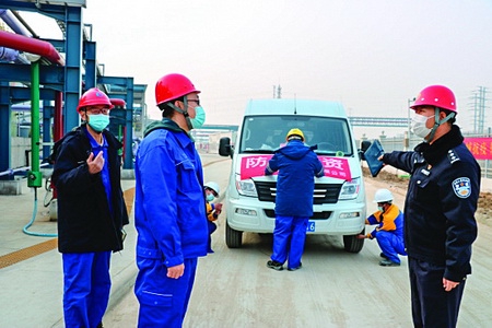 1月19日,公安内保总队一支队民警吴宁和队友一起赶赴坐落于南港工业区的一家大型国企开展上门走访、服务。该企业担负着向天津市域提供消毒液的重要任务。期间,民警们详细了解了该企业在安全保卫、生产经营、产品运输等方面存在的困难和需要公安机关协调指导的事项,全力保障企业安全顺利完成生产任务,重要防疫物资供给充足。