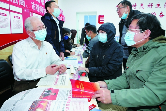 由市律师协会组织的党员律师志愿者来到河西区桃园街照耀里社区宣讲党的十九届六中全会精神,推动六中全会精神在基层落地生根。